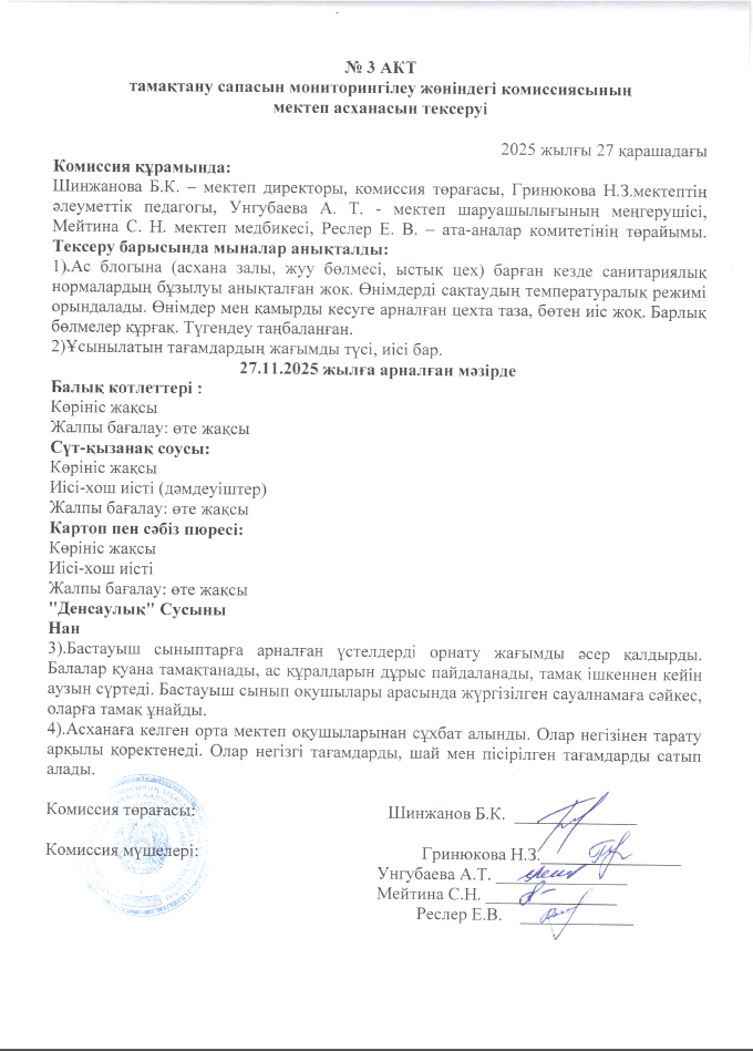 Тамақ өнімдерінің сапасын бақылау туралы № 3 АКТ