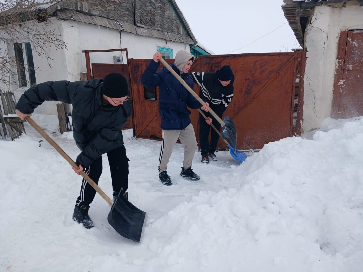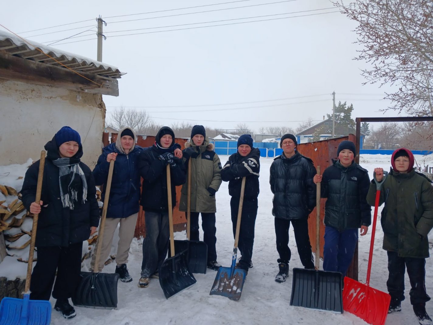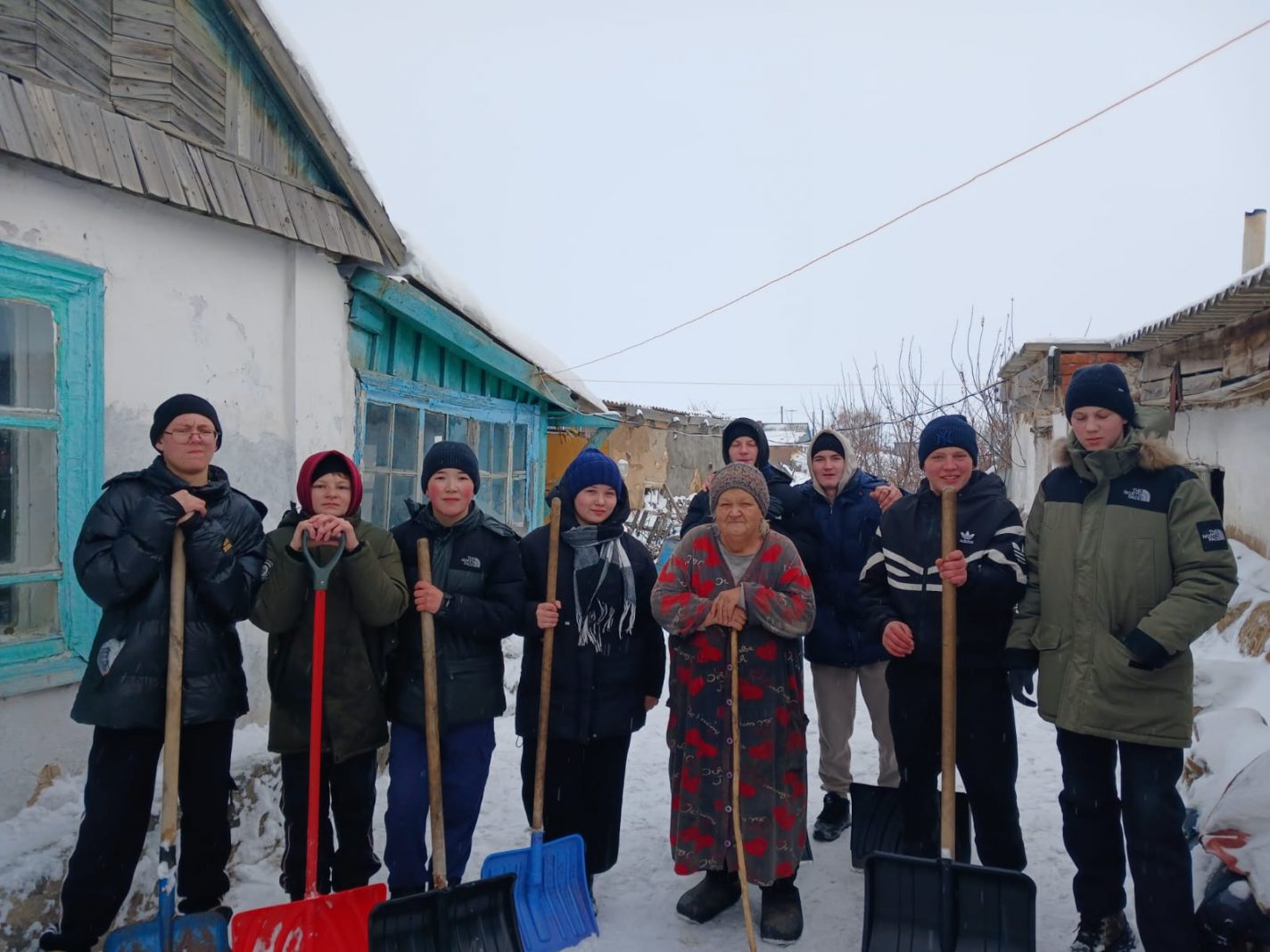 2026 жылғы 9 ақпанда еріктілер Крыжный Илья, Вох Владислав, Глазков Иван, Сильниченко Владислав, Маратова Адель, Мазунин Николай, Жандосұлы Саян ,Мерлойн Алексей 9 "А", 9 "Б", 7 "Б" және 10-сынып "Мариновка ауылының №1 ЖМ" КММ оқушылары жалғыз басты зейнеткер Валентина Прохоровна Крапивкоға көмек көрсетті. Балалар үйдің жанындағы барлық аумақты қардан тазартты, Валентина Прохоровна балаларға көптеген жылы және мейірімді лебіздерін білдірді.