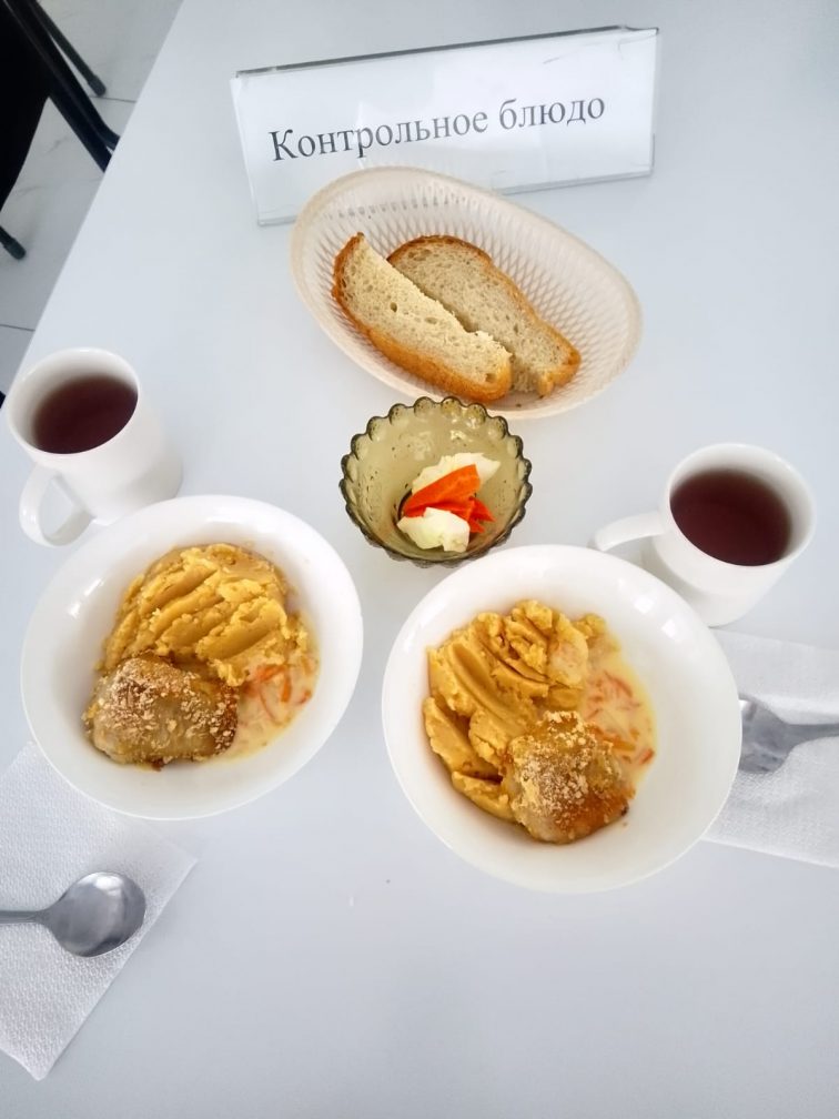 Сәбіз және қырыққабат таяқшалары, қаймақ соусындағы балық каштаны бұршақ пюресі, лимон сусыны алма және нан