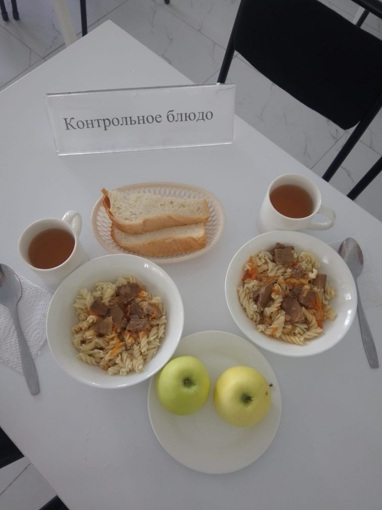 Гарнирге арналған сиыр еті бар Гуляж макарон, қант қосылған шай нан және алма