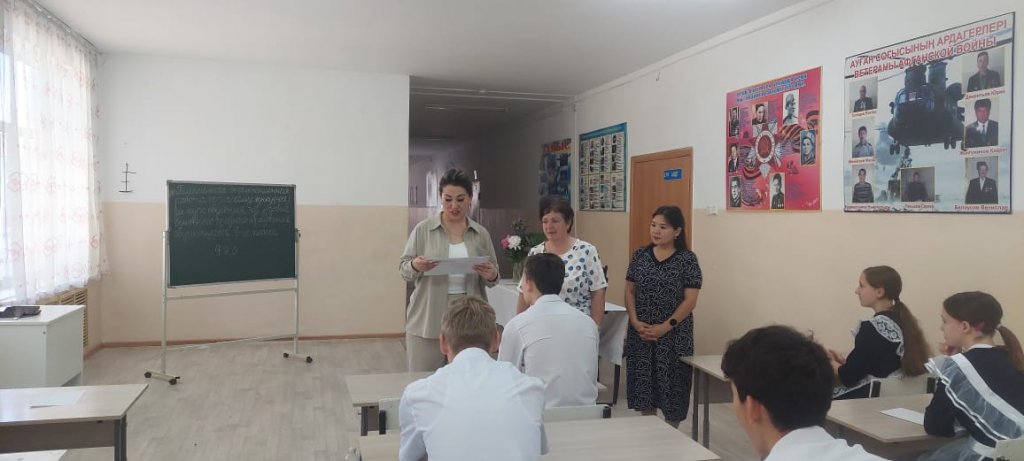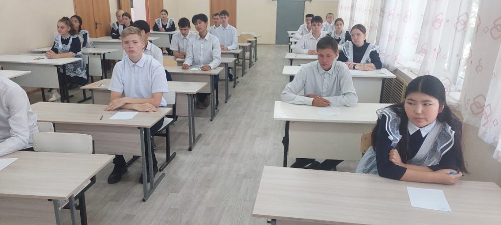 Бүгін, 02.06.2025 ж., 9 сынып оқушылары "Орыс тілі" пәні бойынша қорытынды аттестаттаудың емтихан жұмысын орындауда.