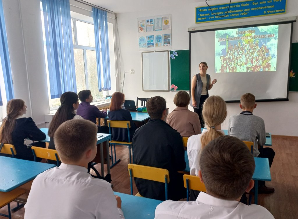 8 қыркүйекте "Мариновка ауылының №1ЖББМ" 6-11 сынып оқушылары үшін Қазақстан халқы тілдері күнін мерекелеу аясында "Тіл – татулық тірегі" тақырыбында сынып сағаттары өтті. Мазмұнды бейне презентациялар, бейнероликтер, викториналар оқушылардың елдердің тарихына, мәдениетіне, сондай-ақ достыққа, толеранттылыққа деген қызығушылығын оятып, өз Отанына деген мақтаныш сезімін қалыптастырды.