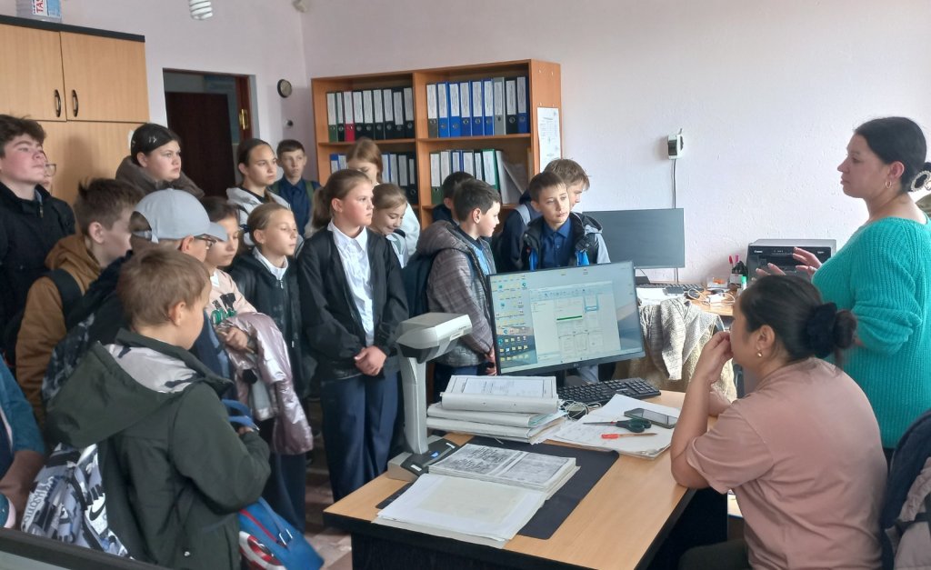 Еңбек күнін мерекелеу қарсаңында кәсіптік бағдар беру мақсатында "Мариновка ауылының № 1ЖББМ " КММ оқушылары Мариновка ауылының Мемлекеттік аудандық мұрағатына танымдық экскурсия жасады.