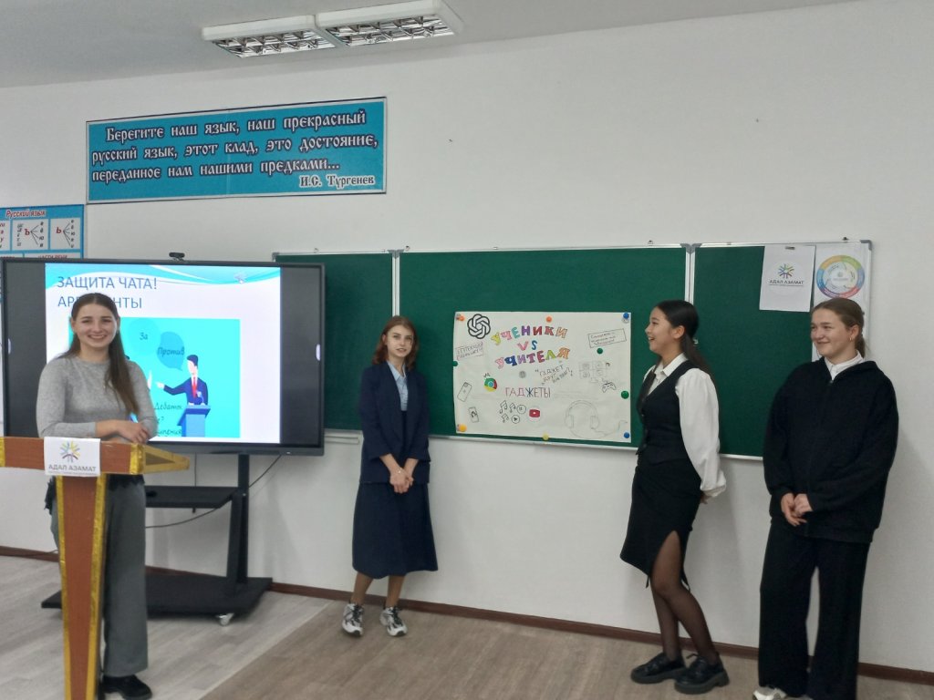 "Адал азамат" құндылық - "Бірлік және ынтымақтастық" бағдарламасын жүзеге асыру аясында "Мариновка ауылының №1 ЖББМ" КММ-де "Аманат" пікірсайыс клубының "Заманауи технологияларды кім жақсы басқарады– оқушылар немесе мұғалімдер?" тақырыпта мұғалімдер күніне арналған отырысы болып өтті. Іс-шараға практикалық сабақ өткізген оқушылар командасы мен мұғалімдер командасы қатысып, әртүрлі пайдалы сайттар, бағдарламалар, чаттар, жасанды интеллект құралдары туралы әңгімеледі, осылайша кәсіби құзыреттілікті арттыруға, жұмыстың жаңа әдістерін игеруге және тәжірибе алмасу мүмкіндіктерін кеңейтуге ықпал етті.