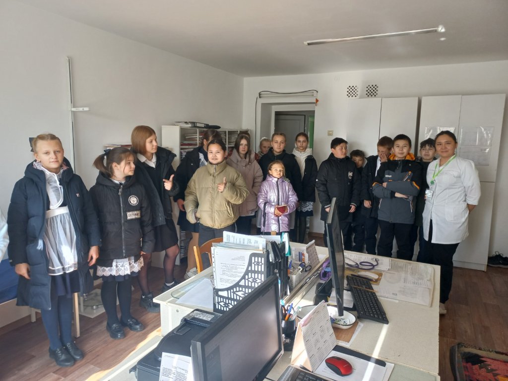 "Адал азамат " құндылық - "Еңбекқорлық және кәсіпқойлық" бағдарламасын жүзеге асыру аясында 16 қазанда "Мариновка ауылының №1 ЖББМ" КММ оқушылары Мариновка ауылының дәрігерлік амбулаториясына барды. Экскурсия кәсіби бағдар беру және медицина қызметкерлерінің жұмысымен танысу мақсатында ұйымдастырылды.