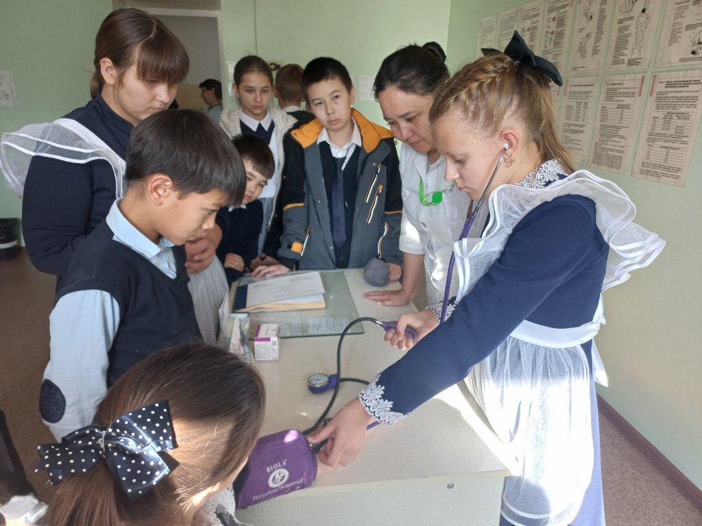 Оқушыларға осы мамандықта өздерін сынап көруге мүмкіндік берілді: олар сыныптастарының бойын, салмағын өлшеп, тонометрмен жұмыс жасады.
