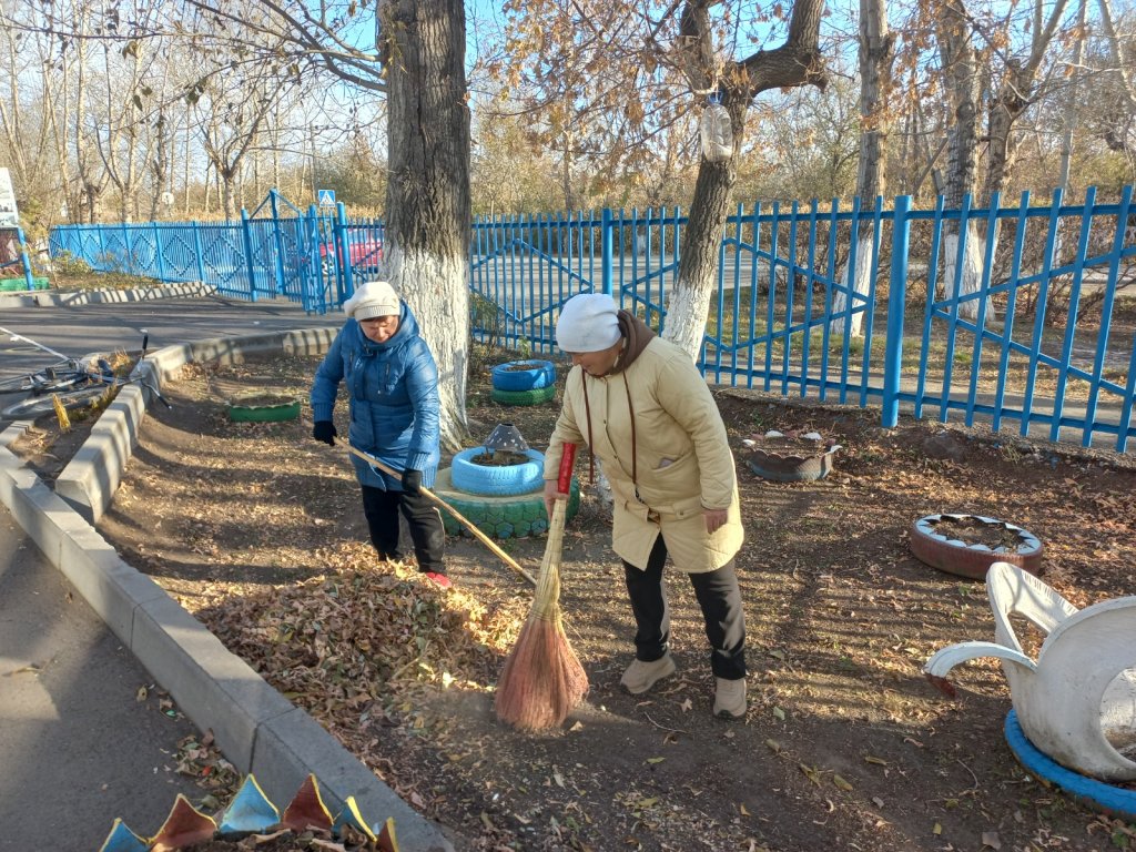 2025 жылғы 16 қазанда "Мариновка ауылының N1 жалпы білім беретін мектебі" КММ қызметкерлері жалпы аудандық сенбілікке қатысты.
