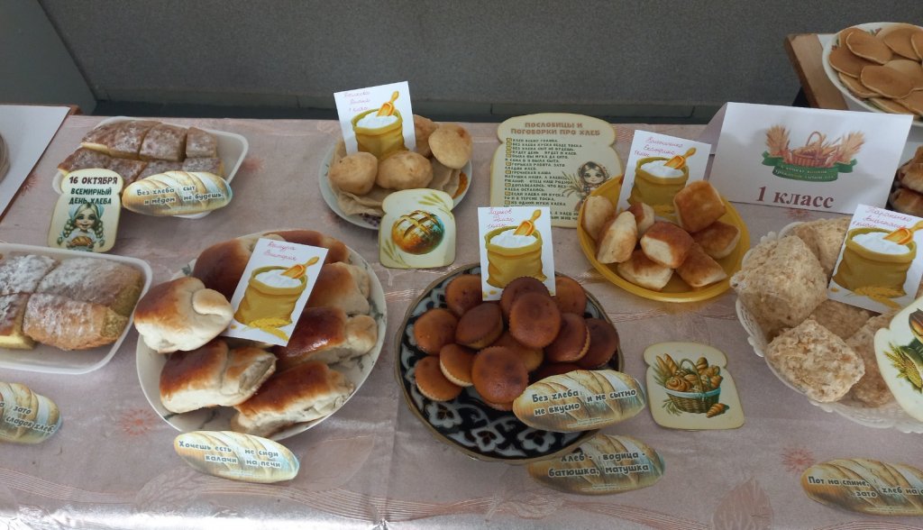 "Мариновка ауылының №1 ЖББМ" КММ-де Нан күні мерекесі аясында мектеп фойесінде барлық сыныптар қатысқан "Туған жердің жомарттығы" нан-тоқаш өнімдерінің көрмесі өтті. Балалар нан өнімдерінің алуан түрін ұсынды: тоқаш, бауырсақ, пицца, роллдар, құймақ, пирогтар, торттар, вафли және т. б.