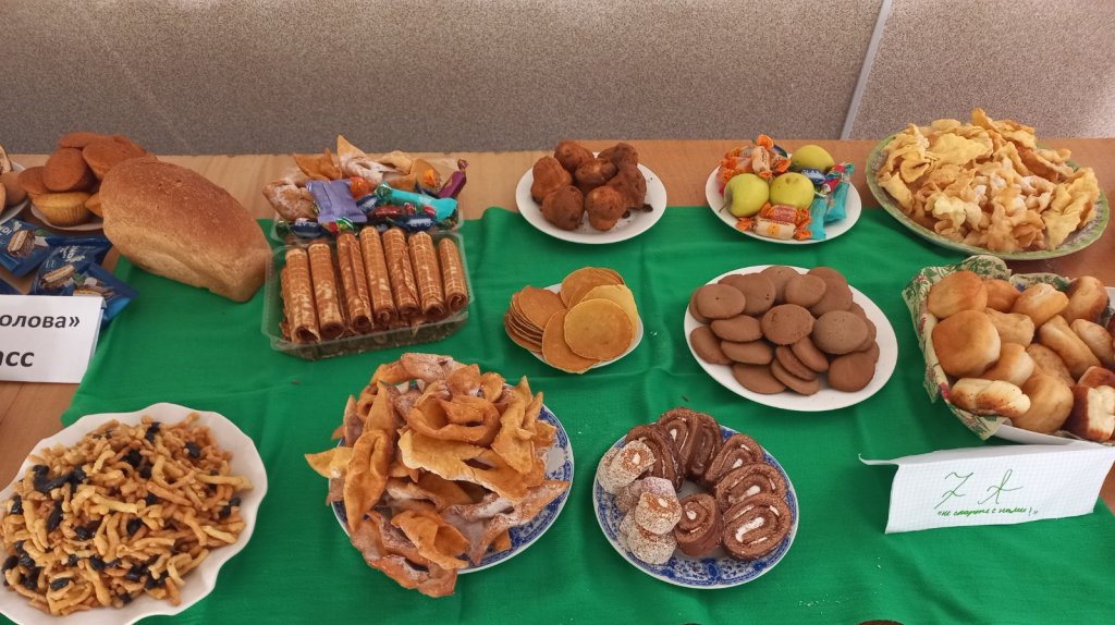 Бүкіл көрмені үйде сүйіспеншілікпен пісірген балалар мен ата-аналар дайындады. Соңында-барлық балалар мектеп асханасында хош иісті тоқаштар мен тәттілерден дәм татты .