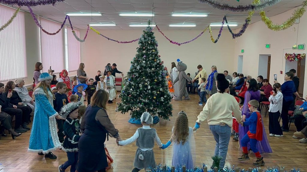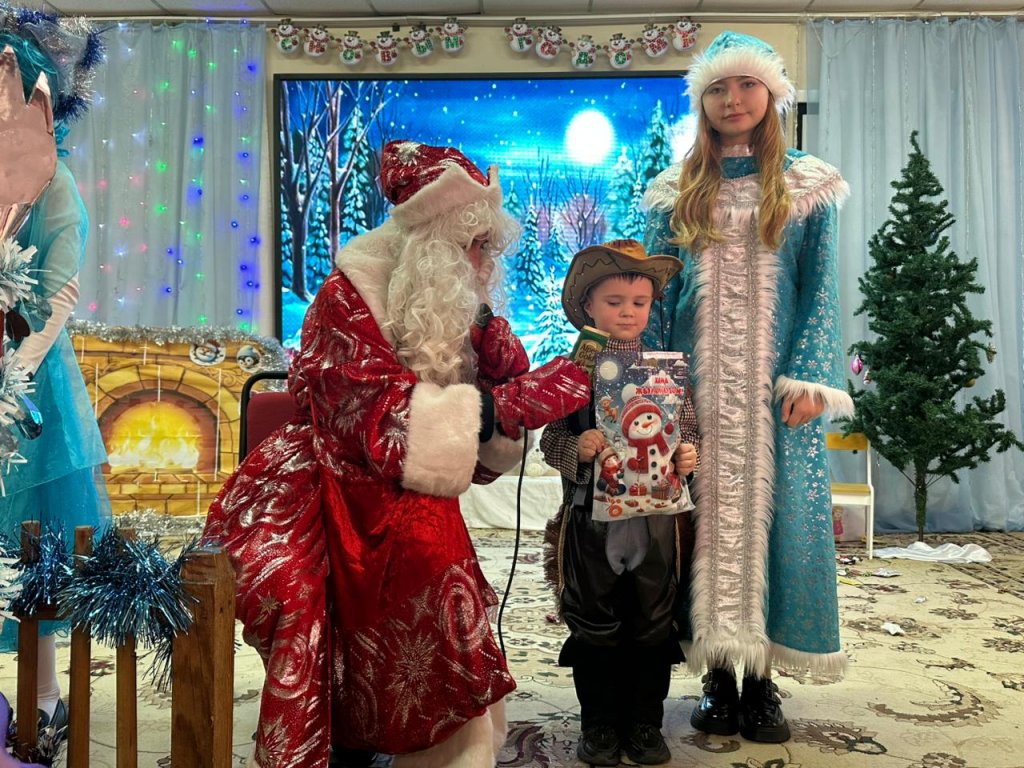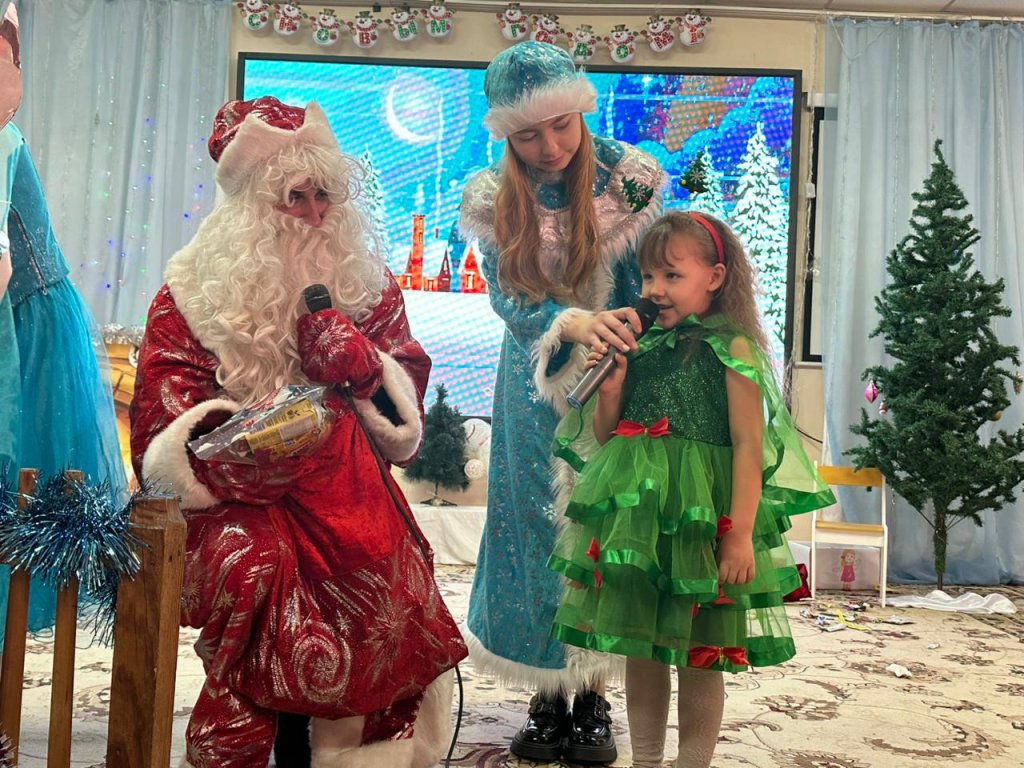 Ертегі кейіпкерлері: Маша, Аю, Қоян, Аяз Ата, Ақшақар балаларға жаңа жылдық мереке - әндермен, билермен, ойындармен, жарыстармен ертегі сыйлады. Бұл мерекені балаларға да, ата-аналарға да эмоциялар мен таңданыстар теңізі, керемет көңіл-күй сыйлады.