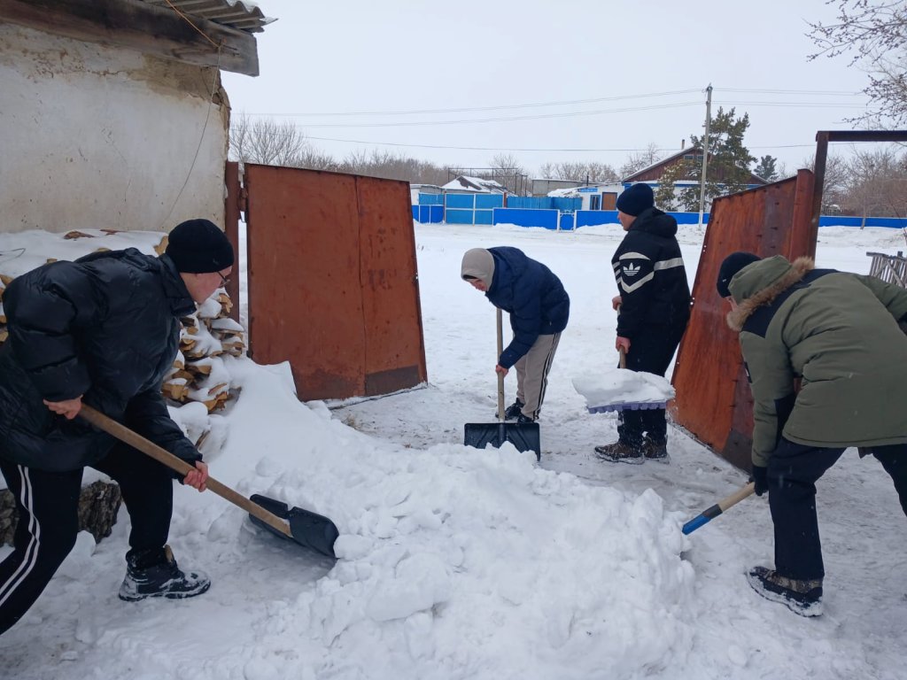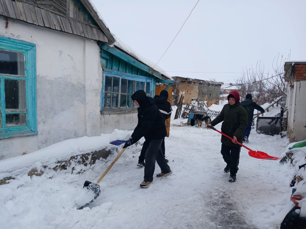 2026 жылғы 9 ақпанда еріктілер Крыжный Илья, Вох Владислав, Глазков Иван, Сильниченко Владислав, Маратова Адель, Мазунин Николай, Жандосұлы Саян ,Мерлойн Алексей 9 "А", 9 "Б", 7 "Б" және 10-сынып "Мариновка ауылының №1 ЖМ" КММ оқушылары жалғыз басты зейнеткер Валентина Прохоровна Крапивкоға көмек көрсетті. Балалар үйдің жанындағы барлық аумақты қардан тазартты, Валентина Прохоровна балаларға көптеген жылы және мейірімді лебіздерін білдірді.