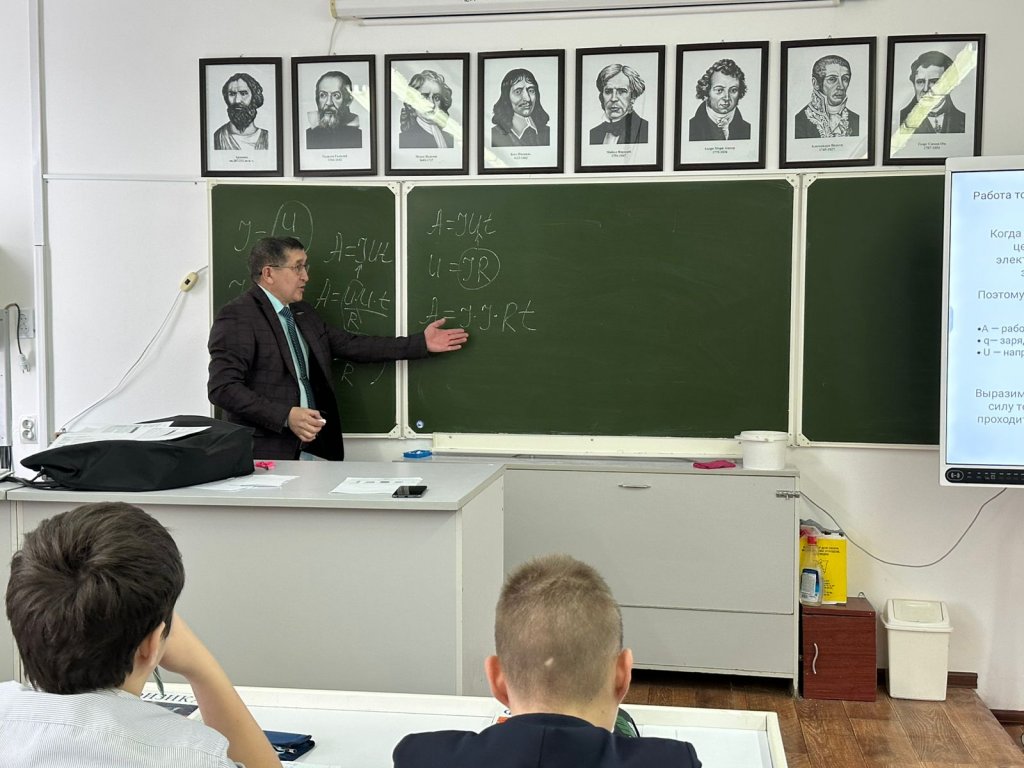 2026 ж. 16 ақпан күні "Мариновка ауылының №1 жалпы білім беретін мектебі" КММ физика пәнінің мұғалімі Шинжанов Баржаксы Казизханович "Математика, Информатика, Физика" онкүндігі аясында 8-сыныпта "Электр тогының жұмысы мен қуаты. Электр тогының жылу әрекеті, Джоуль – Ленц заңы" тақырыбында ашық сабақ өткізді.