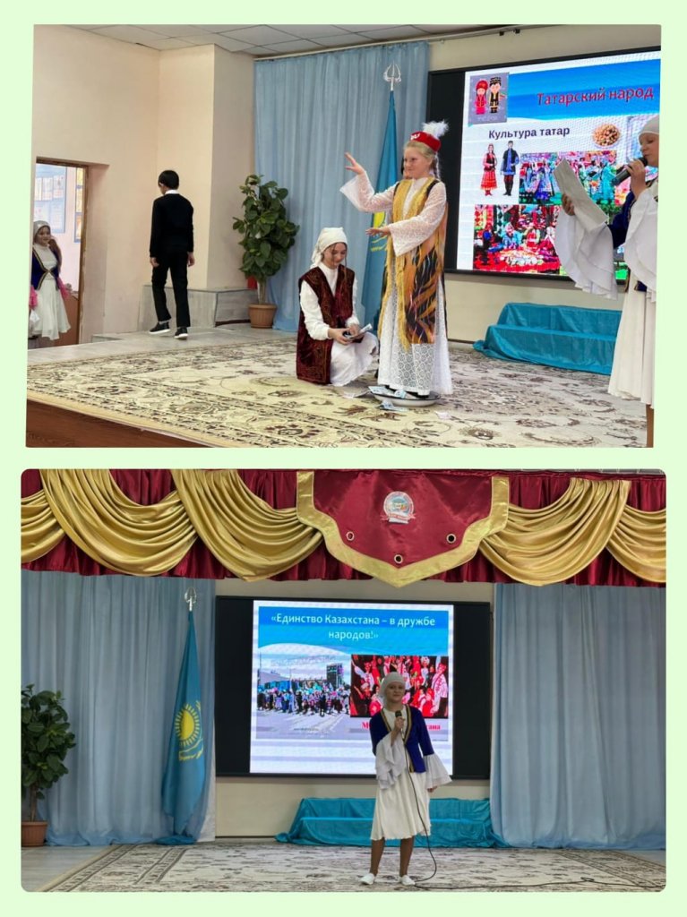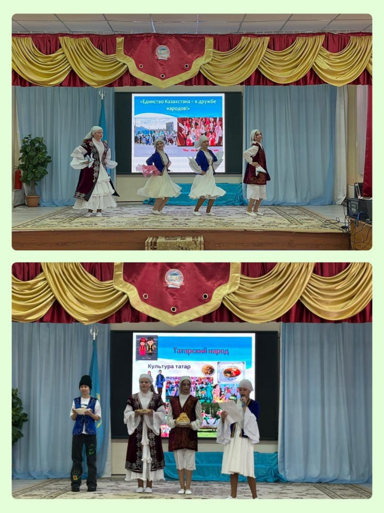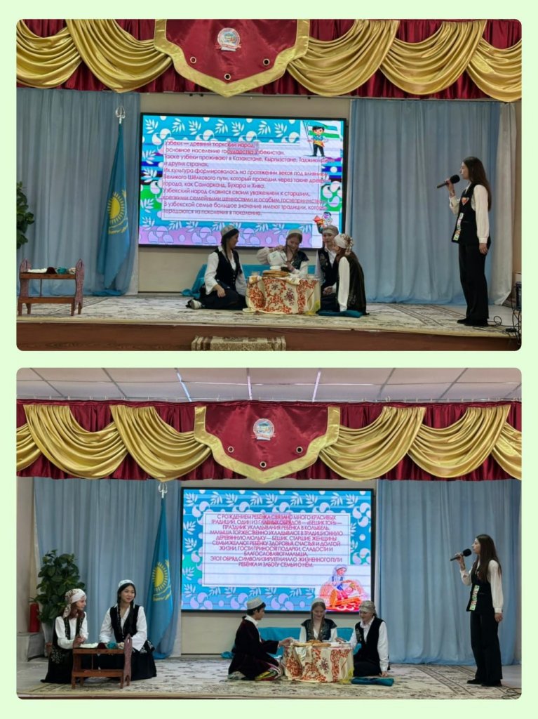 Әр сынып Қазақстанда тұратын ұлттардың бірін таныстырды, оқушылар салт-дәстүрлер, мәдениеттер, әдет-ғұрыптар туралы айтып, жарқын ұлттық костюмдер көрсетті: қазақ, орыс, өзбек, қырғыз, татар, украин, кавказ, және, әрине, ұлттық тағамдардың тағамдарын ұсынды.