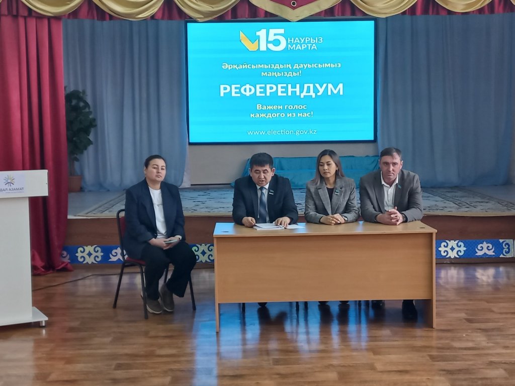 3 наурызда Атбасар қаласының "AMANAT" партиясы өкілдерінің ҚР жаңа Конституциясының және алдағы 15 наурызда өтетін референдумның негізгі ережелерін түсіндіру бойынша "Мариновка ауылының №1ЖББМ" ұжымымен кездесуі өтті.